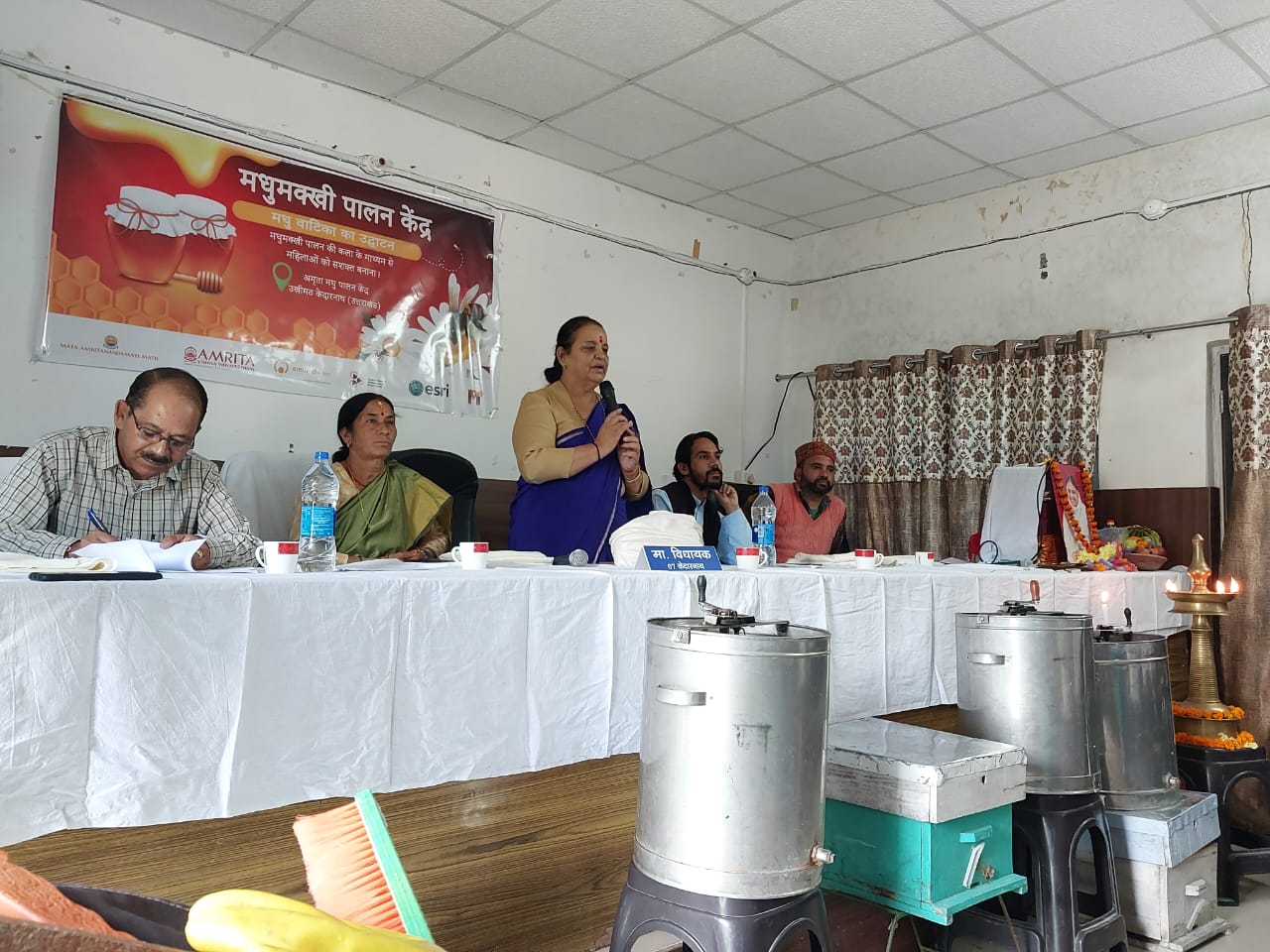 जनमंच टुडे। ऊखीमठ। माता अमृतानन्दमाई मठ / अमृता विश्व विधा पीठम् केरल के तत्वावधान में ब्लॉक सभागार में कार्यशाला का आयोजन किया गया जिसमें स्थानीय जनप्रतिनिधियों व मधुपालन से जुड़ी विभिन्न समूह की महिलाओं ने बढ – चढ़कर भागीदारी की ।इस दौरान मधुमक्खी पालन से जुड़ी हुई 56 महिलाओं को मधुमक्खी पालन के बाक्स वितरित किये गए। कार्यशाला में बतौर मुख्य अतिथि केदारनाथ विधायक शैलारानी रावत ने कहा कि अमृता विश्वविद्यापीठम का मुख्य उद्देश्य मधुमक्खी पालन उद्यमों के माध्यम से स्थायी आजीविका स्थापित करने की दिशा में महिलाओं का मार्गदर्शन करके उन्हें सशक्त बनाना है । उन्होंने कहा कि आज महिलाएं हर क्षेत्र में कार्य कर आत्मनिर्भर बन रही है तथा देश के सर्वोच्च पदों पर महिलायें अपने कर्तव्यों का बखूबी निर्वहन कर रही है। नगर पंचायत अध्यक्ष विजय राणा ने कहा कि ईएसआरआई इंडिया द्वारा समर्थित और मारुति ओवरसीज की तकनीकी सहायता से, इस पहल ने लक्षित समुदायों में मधुवाटिका स्थापित करके और महिला स्वयं सहायता समूहों को मधुमक्खी पालन में व्यापक प्रशिक्षण प्रदान करके अपना लक्ष्य हासिल किया।
