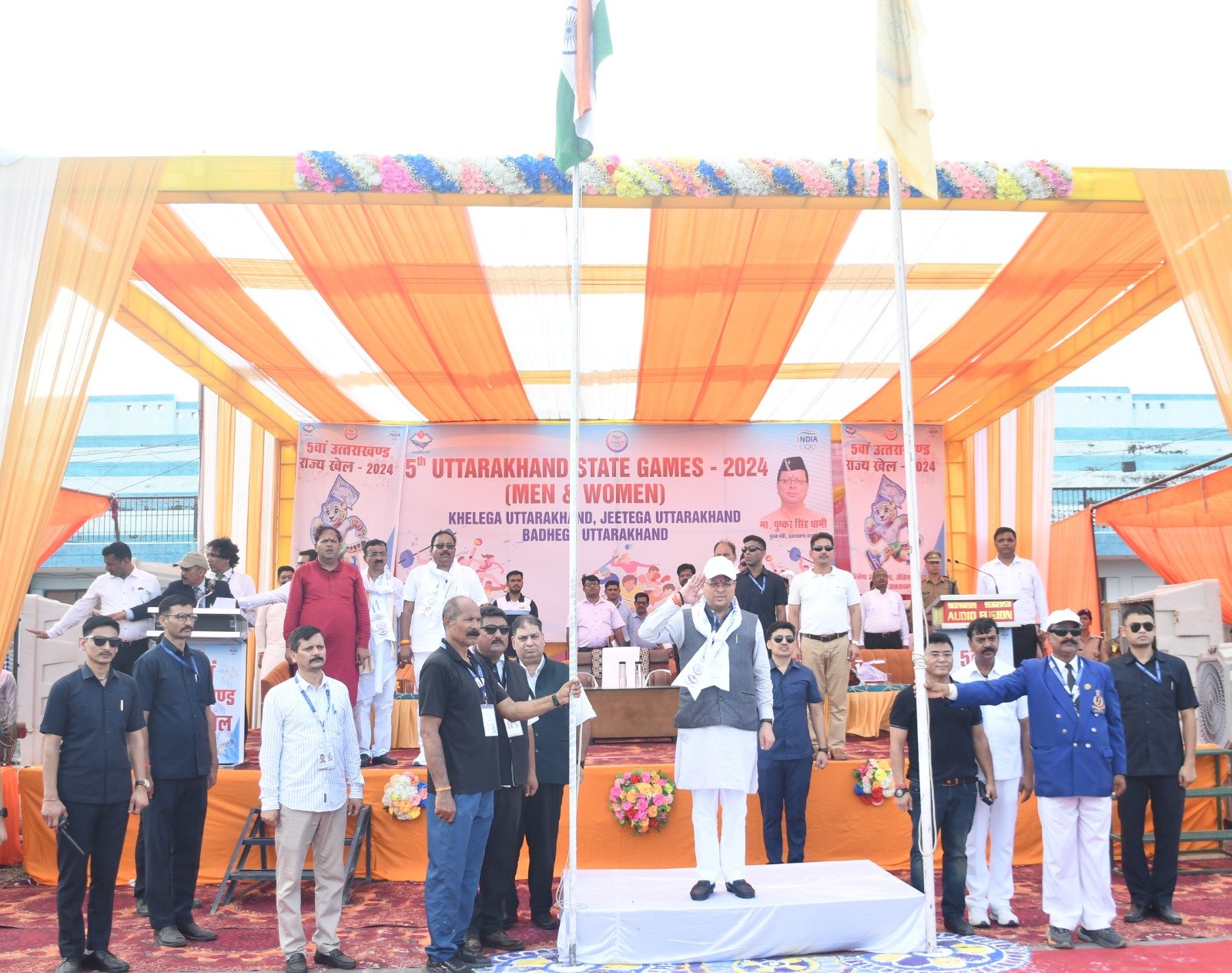 रुद्रपुर। मुख्यमंत्री पुष्कर सिंह धामी ने शनिवार को मनोज सरकार स्पोर्ट्स स्टेडियम रुद्रपुर में 27 सितम्बर तक आयोजित होने वाले पंचम राज्य ओलंपिक खेलों का विधिवत शुभारंभ किया। मुख्यमंत्री के हेलीपैड से रोड शो के दौरान स्टेडियम पहुंचने पर खिलाड़ियों ने पुष्प वर्षा कर मुख्यमंत्री का स्वागत किया। मुख्यमंत्री ने राष्ट्रीय एवं ओलंपिक ध्वज फहराकर विभिन्न जनपदों से आये खेल दलों के मार्चपास्ट की सलामी ली तथा शुभांकर व मैडल का अनावरण कर खेलों का विधिवत शुभारम्भ किया। मुख्यमंत्री ने खिलाड़ियों, जिला प्रशासन, राज्य ओलंपिक संघ को बधाई देते हुए कहा कि खेलों का यह आयोजन उत्तराखंड के खिलाड़ियों को ना सिर्फ अपनी प्रतिभा दिखाने का मौका देगा बल्कि उन्हें राष्ट्रीय और अंतरराष्ट्रीय स्तर पर अपनी पहचान स्थापित करने के लिए प्रेरित भी करेगा। उन्होंने कहा कि इस आयोजन का उद्देश्य खेलों की विभिन्न प्रतियोगिताएं आयोजित करवाना एवं उत्तराखंड के सुदूरवर्ती क्षेत्रों सहित सभी मेहनती और समर्पित खिलाड़ियों को एक स्तरीय मंच प्रदान करना हैै। जिसके द्वारा वे अपने खेल को एक नई दिशा प्रदान कर सकें।