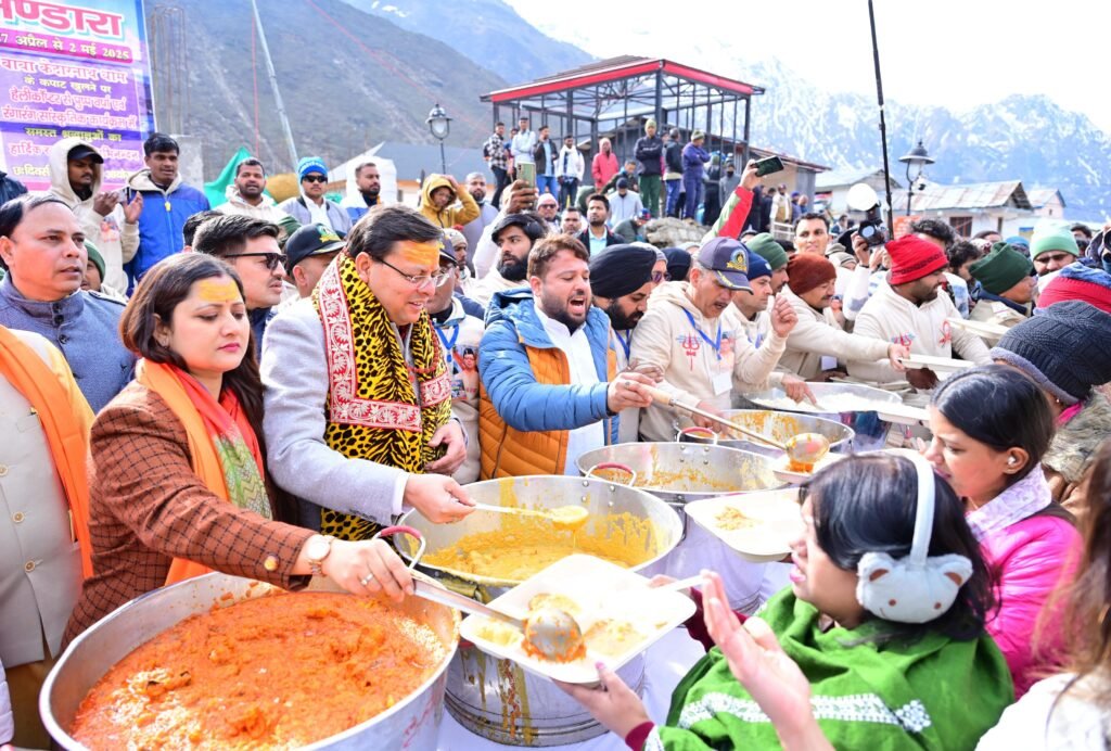 केदारनाथ। विश्व प्रसिद्ध ग्यारहवें ज्योर्तिलिंग श्री केदारनाथ धाम के कपाट खुलने के अवसर पर केदारनाथ में मुख्यमंत्री श्री पुष्कर सिंह धामी ने केदारनाथ परिसर में आयोजित मुख्य सेवक भंडारा में श्रद्धालुओं को प्रसाद वितरित किया। इस दौरान उन्होंने केदारनाथ की स्वच्छता में लगे पर्यावरण मित्रों, पुनर्निर्माण कार्य में अपना महत्वपूर्ण योगदान देने वाले लोगों को सम्मानित भी किया। मुख्यमंत्री पुष्कर सिंह धामी ने सपत्नीक मुख्य सेवक भंडारा के तहत श्रद्धालुओं को प्रसाद वितरण किया और भोजन परोसा। अपने बीच मुख्यमंत्री को पाकर श्रद्धालु बेहद खुश नजर आए। इस दौरान हजारों की संख्या में लोगों ने मुख्य सेवक भंडारा का प्रसाद ग्रहण किया। मुख्यमंत्री ने केदारनाथ आए श्रद्धालुओं से मुलाकात की एवं उनसे यात्रा को लेकर की गई व्यवस्थाओं का फीडबैक भी लिया । यात्रा के लिए राज्य सरकार द्वारा की गई विभिन्न व्यवस्थाओं के लिए श्रद्धालुओं ने मुख्यमंत्री का आभार व्यक्त किया। मुख्यमंत्री ने बाबा केदारनाथ के कपाट खुलने पर सभी देशवासियों को शुभकामनाएं दी। उन्होंने कहा 4 मई को बद्रीनाथ जी के कपाट खुलेंगे। राज्य सरकार देशभर से आने वाले श्रद्धालुओं के स्वागत एवं उनकी यात्रा को सुगम बनाने के लिए पूर्ण रूप से तैयार है। मुख्यमंत्री ने कहा कि गत वर्ष केदारनाथ क्षेत्र में आपदा आई थी, जिससे करीब 35 दिन यात्रा बाधित रही। सरकार और प्रशासन ने स्थानीय लोगों के सहयोग से यात्रा को पुनः शुरु किया, जिससे फलस्वरूप रिकॉर्ड संख्या में श्रद्धालु चार धाम आए। मुख्यमंत्री ने कहा कि राज्य सरकार हर स्तर पर यात्रा की लगातार मॉनिटरिंग करती है। यात्रा मार्गो में भी विभिन्न मूलभूत सुविधाएं स्थापित की गई हैं। उन्होंने कहा चार धाम यात्रा राज्य की लाइफलाइन भी है। यह यात्रा लाखों लोगों की आजीविका का साधन भी है। मुख्यमंत्री ने कहा राज्य सरकार का संकल्प है कि चार धाम यात्रा साल भर चले, जिसके लिए राज्य में शीतकालीन यात्रा को भी प्रारंभ किया गया है। उन्होंने कहा प्रधानमंत्री श्री नरेंद्र मोदी ने राज्य में शीतकालीन यात्रा को बढ़ावा देने के लिए मुखवा, उत्तरकाशी में मां गंगा के दर्शन किए थे। मुख्यमंत्री ने समस्त प्रदेशवासियों की ओर से प्रधानमंत्री का आभार किया। उन्होंने कहा केदारनाथ का पुनर्निर्माण कार्य प्रधानमंत्री जी के नेतृत्व में हो रहा है। प्रधानमंत्री केदारनाथ पुनर्निर्माण कार्य की नियमित समीक्षा करते हैं। 2000 करोड़ की लागत से केदारनाथ का भव्य निर्माण कार्य जारी है। उन्होंने कहा प्रधानमंत्री के नेतृत्व में केंद्र सरकार ने गौरीकुंड से केदारनाथ तक रोपवे निर्माण कार्य को स्वीकृति प्रदान की है।