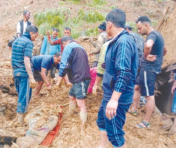 चमोली। थराली क्षेत्र के बाद अब देवाल तहसील के मोपाटा में भी अतिवृष्टि के कारण भारी नुकसान हुआ है। इस घटना में एक दंपति मलबे में जिंदा दफन हो गए हैं, जबकि एक दंपति जख्मी हो गया। मलबे में दबे दंपति के शवों खोजकर निकाल लिया गया है। घायलों का उपचार देवाल स्वास्थ्य केंद्र में किया जा रहा है। गुरुवार की रात्रि को भारी बारिश के चलते देवाल के मोपाटा में अतिवृष्टि के कारण एक भवन पूरी तरह से क्षतिग्रस्त हो गया है। इस घटना में एक दंपति की मलबे में जिंदा दफन हो गए जबकि एक दंपति को काफी चोंटे आई है। घटना की सूचना मिलने पर तहसील प्रशासन, डीडीआरएफ ने मौके पर पहुंचकर स्थानीय लोगों की मदद से राहत और बचाव कार्य शुरू किया। मोपाटा में गुरुवार रात्रि हुई अतिवृष्टि से गांव में एक आवासीय भवन भूस्खलन की चपेट में आ गया है। इस भवन में रह रहे तारा सिंह और उनकी पत्नी कमला देवी मलबे की जद में आकर जिंदा दफन हो गए जबकि दूसरे मकान में रह रहे विक्रम सिंह और उनकी पत्नी दुर्गा देवी जख्मी हो गए हैं। विक्रम सिंह का भवन भी इस आपदा की भेंट चढ़ गया है।घटना की सूचना मिलने के बाद तहसील प्रशासन की टीम ने 10 से 11 किमी की पैदल दूरी तय कर घटना स्थल तक पहुंची। स्थानीय ग्रामीणों की मदद से लापता दम्पति को खोजने के लिए राहत और बचाव का कार्य शुरू किया। काफी मशक्कत के बाद तारा सिंह और उनकी पत्नी के शव को मलबे से निकाला गया। उप जिलाधिकारी पंकज कुमार भट्ट ने बताया कि आपदा क्षेत्र में राहत कायरे के लिए डीडीआरएफ और स्वास्थ्य विभाग प्रभावित क्षेत्र में पहुंच कर राहत कायरें में जुटा हुआ है। बारिश के चलते बाधित हुई सड़कों को खोलने का कार्य युद्ध स्तर पर किया जा रहा है। उन्होंने बताया कि घटना में एक दंपति लापता हुए थे उनके शवों को खोज लिया गया है। दोनों घायल दंपति का उपचार अस्पताल में चल रहा है। मोपाटा में आई आपदा में 60 बकरियां, दो बैल, दो गाय, एक भैंस की मौत हो गई है।