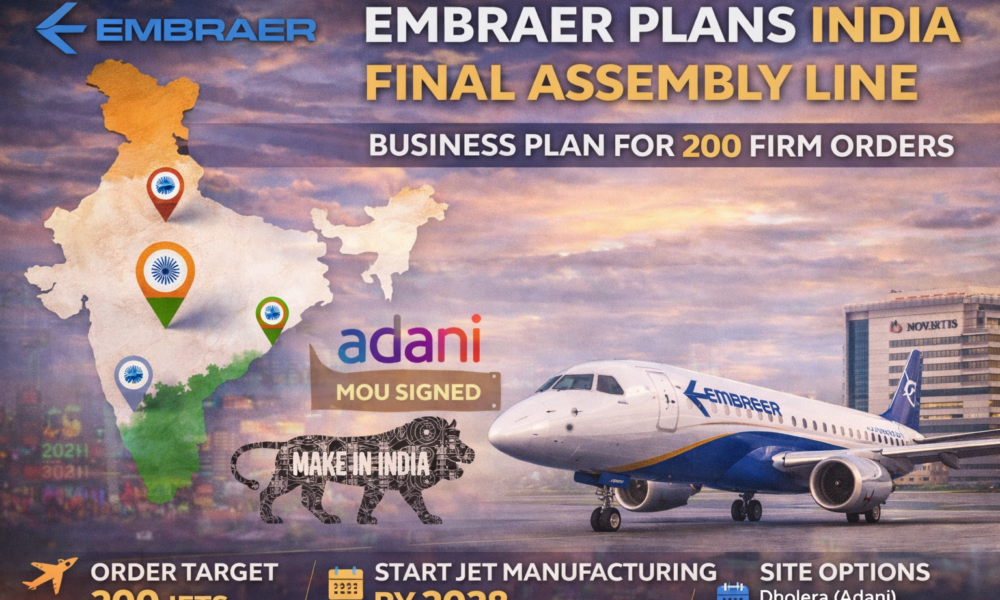 नई दिल्ली – भारत को वैश्विक एयरोस्पेस विनिर्माण केंद्र में बदलने की दिशा में एक महत्वपूर्ण कदम उठाते हुए, ब्राजील की दिग्गज कंपनी एम्ब्रेयर (Embraer) ने ब्राजील के बाहर अपनी पहली वाणिज्यिक विमान ‘फाइनल असेंबली लाइन’ (FAL) स्थापित करने के लिए एक स्पष्ट खाका पेश किया है। एम्ब्रेयर के अध्यक्ष और सीईओ फ्रांसिस्को गोम्स नेटो ने खुलासा किया कि कंपनी स्थानीय उत्पादन सुविधा को आर्थिक रूप से व्यवहार्य बनाने के लिए भारतीय विमानन कंपनियों से कम से कम 200 विमानों के ‘फर्म ऑर्डर’ की तलाश कर रही है।