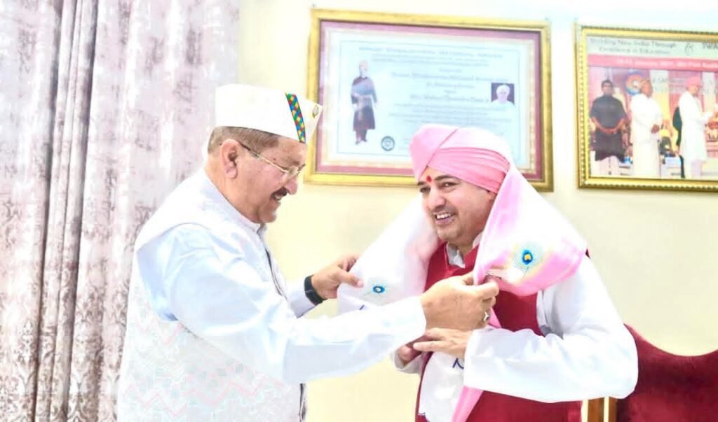 देहरादून। खादी एवं ग्रामोद्योग तथा ग्राम्य विकास मंत्री भरत चौधरी ने शुक्रवार को श्री दरबार साहिब पहुंचकर मत्था टेका और देश-प्रदेश की खुशहाली की कामना की। इस अवसर पर उन्होंने श्री दरबार साहिब के सज्जादे गद्दी नशीन एवं श्री गुरु राम राय विश्वविद्यालय के माननीय प्रेसीडेंट श्रीमहंत देवेन्द्र दास जी महाराज से शिष्टाचार भेंट कर आशीर्वाद प्राप्त किया। कैबिनेट मंत्री बनने के बाद पहली बार श्री दरबार साहिब पहुंचे भरत चौधरी का परंपरानुसार भव्य स्वागत किया गया। श्रीमहंत देवेन्द्र दास जी महाराज ने उन्हें श्री दरबार साहिब का स्मृति चिन्ह भेंट कर सम्मानित किया। दोनों के बीच उत्तराखण्ड के समसामयिक विषयों पर विस्तारपूर्वक चर्चा हुई। इस दौरान श्रीमहंत देवेन्द्र दास जी महाराज ने श्री गुरु राम राय विश्वविद्यालय, श्री गुरु राम राय इंस्टीट्यूट ऑफ मेडिकल एंड हेल्थ साइंसेज, श्री महंत इन्दिरेश अस्पताल एवं श्री गुरु राम राय एजुकेशन मिशन द्वारा किए जा रहे जनकल्याणकारी कार्यों की जानकारी दी। कैबिनेट मंत्री भरत चौधरी ने कहा कि “एसजीआरआर ग्रुप के संस्थान चिकित्सा, स्वास्थ्य और शिक्षा के क्षेत्र में उत्कृष्ट कार्य कर रहे हैं। विशेष रूप से श्री महंत इन्दिरेश अस्पताल द्वारा दूरस्थ क्षेत्रों में लगाए जा रहे निःशुल्क स्वास्थ्य शिविर सराहनीय पहल हैं, जो आमजन तक स्वास्थ्य सेवाओं की सीधी पहुंच सुनिश्चित करते हैं।” उन्होंने रुद्रप्रयाग जनपद में श्री महंत इन्दिरेश अस्पताल की ओर से आयोजित स्वास्थ्य शिविर की प्रशंसा करते हुए कहा कि “ऐसे शिविरों से जरूरतमंद लोगों को समय पर उपचार मिलता है। भविष्य में भी इस प्रकार के अधिक से अधिक स्वास्थ्य शिविर आयोजित किए जाने चाहिए, ताकि पहाड़ी क्षेत्रों के लोगों को बेहतर स्वास्थ्य सुविधाएं मिल सकें।” कैबिनेट मंत्री भरत चौधरी ने एसजीआरआर ग्रुप के संस्थानों के उत्कृष्ट संचालन के लिए श्रीमहंत देवेन्द्र दास जी महाराज को बधाई देते हुए विश्वास जताया कि एसजीआरआर परिवार आगे भी समाज सेवा के क्षेत्र में नई ऊंचाइयां स्थापित करेगा।